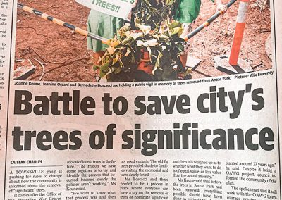 - Coverage of Joanne’s tree advocacy after heritage-listed trees were cut down—galvanising public response and transparency actions.